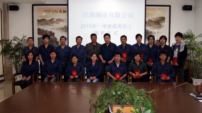 2010年公司制定并推行了《月度優秀員工評選辦法》,為提高優秀員工含金量,2011年改為季度優秀員工評選。2011年第一季度共評選出了17名優秀員工、優秀新人、優秀班組長。 5月6日上午,公司召開了2011年度第一季度優秀員工表彰會,總經理駱偉棟先生為17名優秀員工頒發了榮譽證書,希望他們再接再厲,創造更好的成績。
